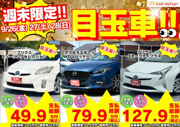 9/26〜9/28の週末限定で目玉車をご用意♪
