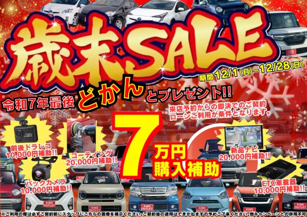 来店予約からの即決契約・ローンご利用で最大7万円購入補助プレゼント!!