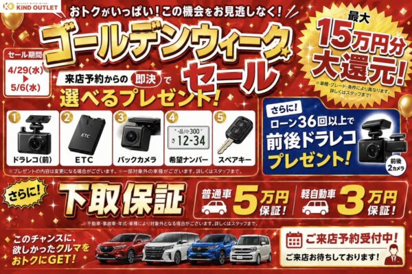 今年のGWはカインドのスーパーセールが熱い!!この機会をお見逃しなく♪